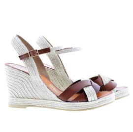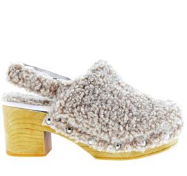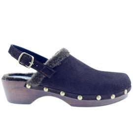 ZUECO CONFECCIONADO EN PIEL DE VACUNO MARRÓN, PISO DE MADERA CON PLASTASFORMA DE 2 cm. Y TACÓN DE 5,5 cm., PLANTA Y FORRO DE PELO EN ECO-PIEL.